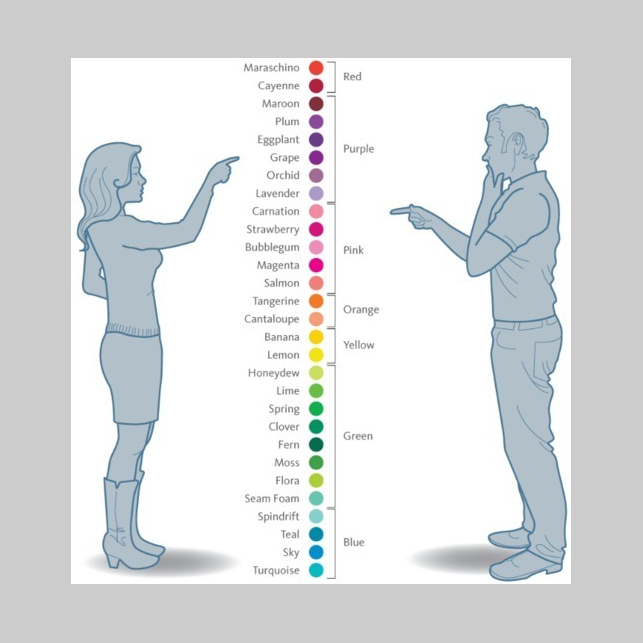 下面這個例子說明了性別差異是如何影響對顏色的感覺和選擇。