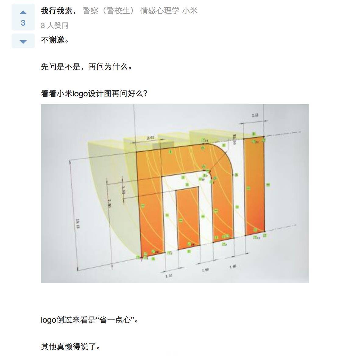 即便小米的LOGO當(dāng)年剛發(fā)布的時候還是有抄襲或是撞車嫌疑,但從截圖回復(fù)來看,小米公司內(nèi)部還是對這個LOGO認(rèn)可, 但我不覺得在設(shè)計之初,設(shè)計師就知道他設(shè)計的LOGO倒過來還能扯上“心”這個層面的意思。