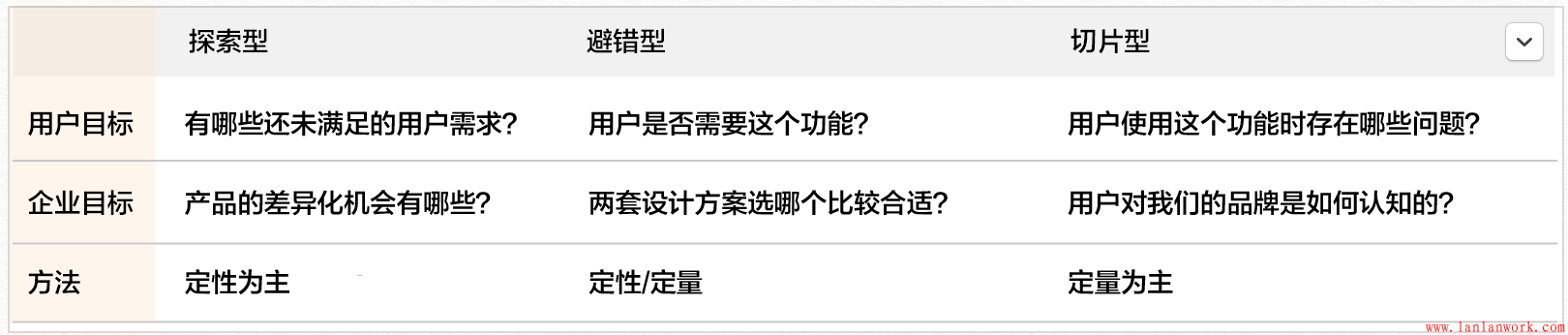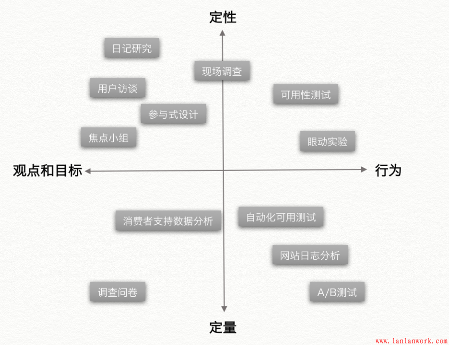 根據(jù)用戶研究的方法,可以分為定性研究和定量研究兩種。