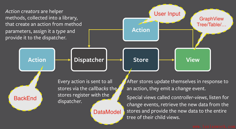 他們只會派發模型變化事件,而 View 通過監聽模型的變化進行相應的更新處理,HT 的模型架構上極其類似 Facebook React https://facebook.github.io/re... 的 Flux