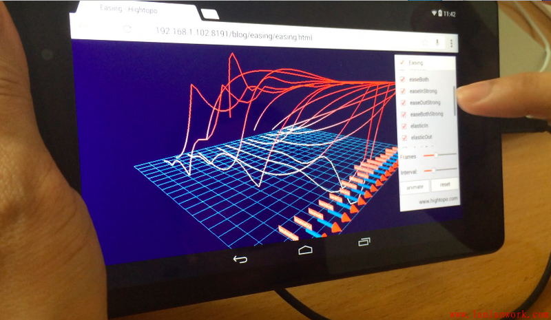 例如 http://www.hightopo.com/guide... 中的 ht.Default.startAnim 函數,該函數支持 Frame-Based 和 Time-Based 兩種方式的動畫,為了理解其中的 Easing 參數可參見 《透過WebGL 3D看動畫Easing函數本質》文章和 http://www.hightopo.com/guide... 這個例子