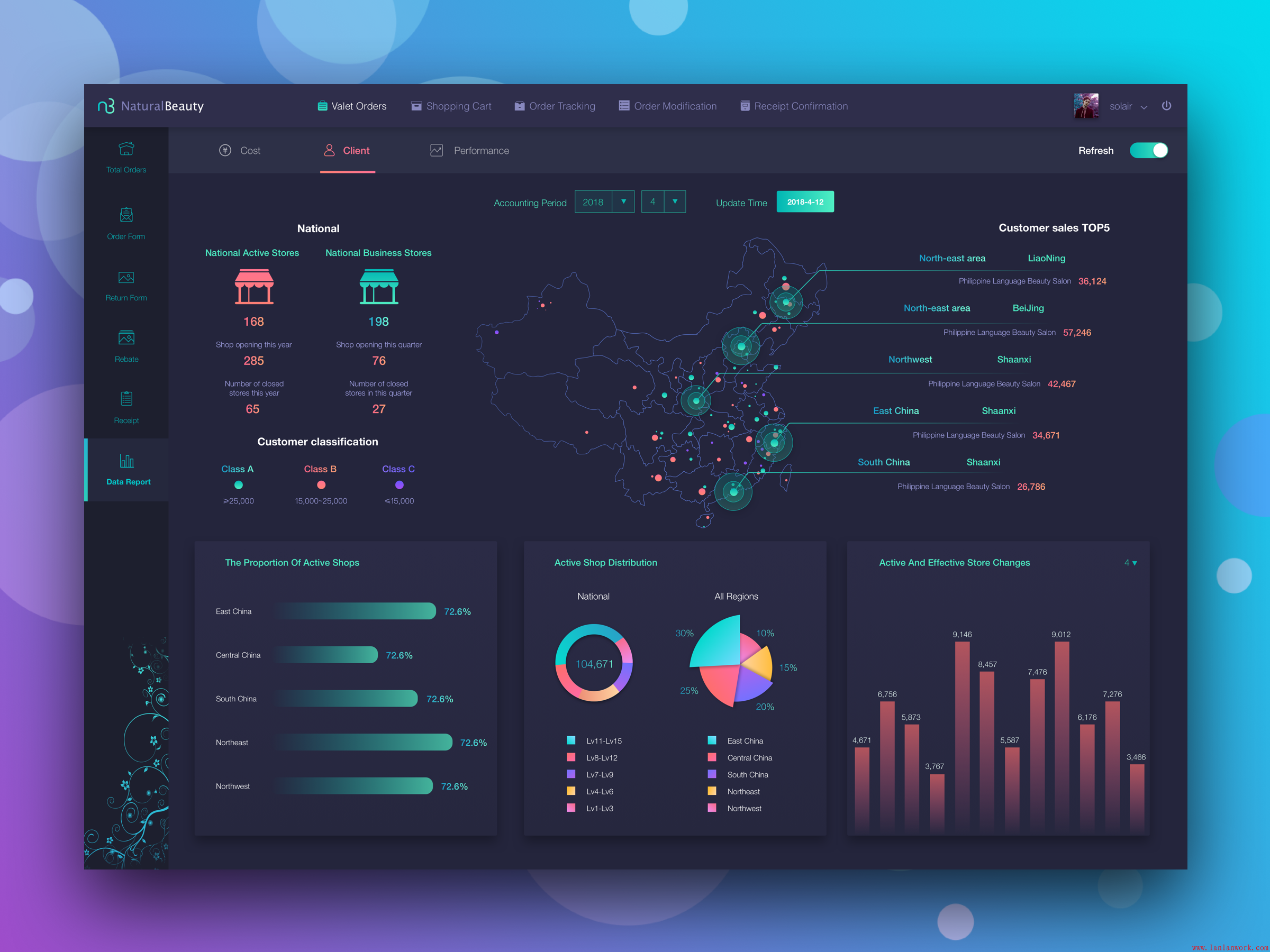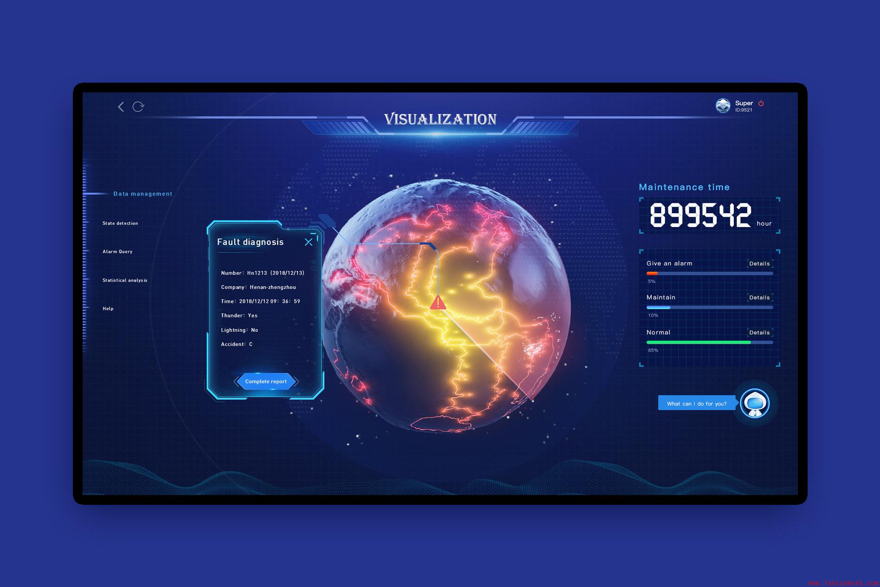 大屏可視化界面設計可謂是當今行業、企業發展的見證,生動直觀地再現了行業、企業的全貌。不僅作為展示,方便了解、監督;同時可以作為一個有效的管理平臺,帶來效益。大屏界面面向范圍廣,協同性好,易于被采用。下面幾個大屏的界面設計,沉穩的背景上,加上亮色作為點綴和強調。既不失其風格,又富有靈動性。