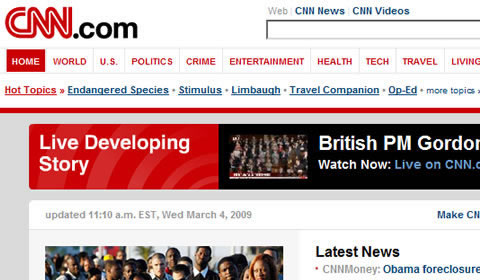 繼續關注新聞站點, CNN 在字體大小寫上缺少變化來平衡頁面。導航條是全部大寫的,但頁面中的其余部分則很傳統地幾乎全部采用了首字母大寫。