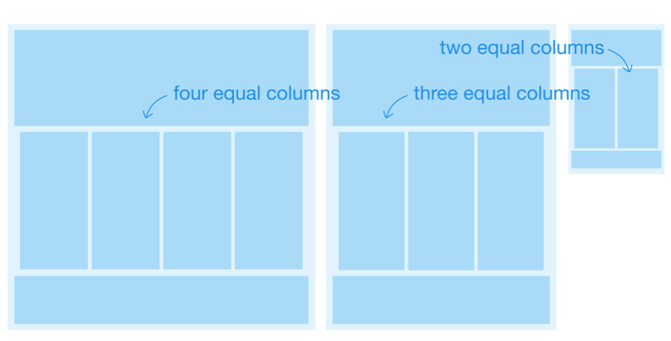 如上圖所示,從每列等寬的情況入手,可以讓規劃工作相對簡單一些,幫助我們將注意力放在響應式的布局改變上。