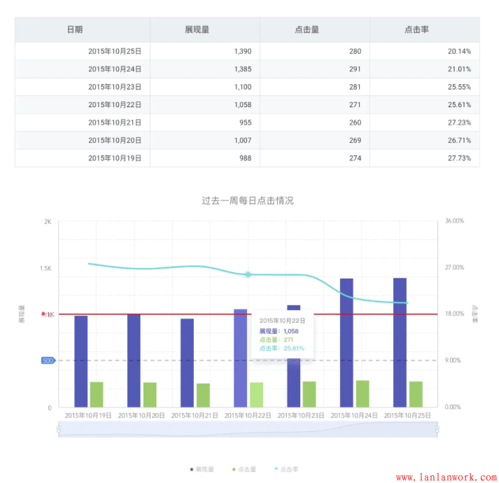 數據產品不要試圖去掩蓋問題,而要反映真實數據,暴露問題,并且和用戶一同解決。比如對數據閾值進行監測,預警線就是很友好的可視化方式。