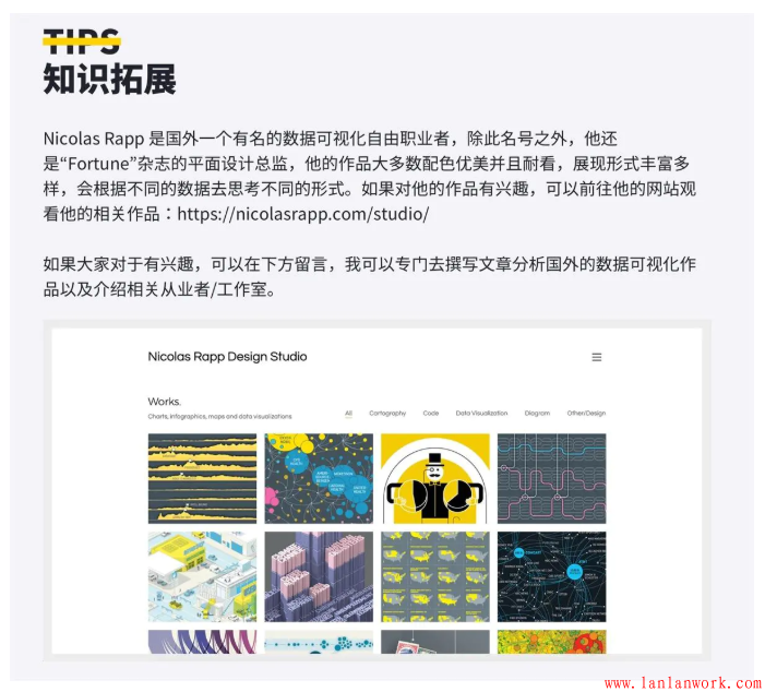 筆者剛開始學習數據可視化就是拿著數據表格不停地在競品上摸索,作為一名用戶去感受這些圖表的交互體驗。這里推薦一份數據可視化網站名單。