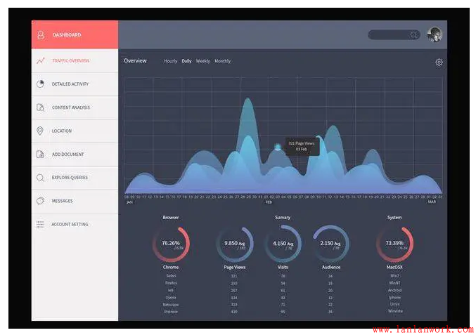 優點:可以通過布局建立良好的視覺層次,深層次地反映內容,而且視覺吸引力強,給人以高端的視覺感受。