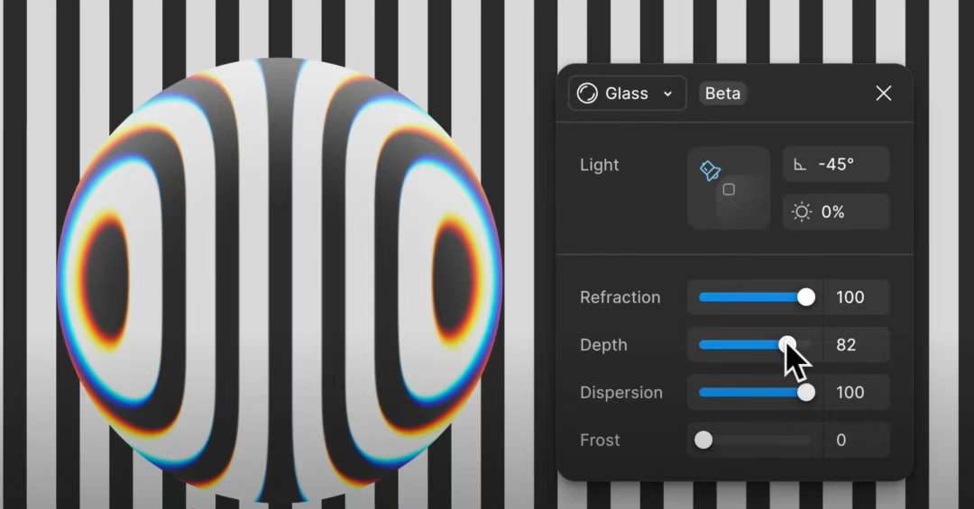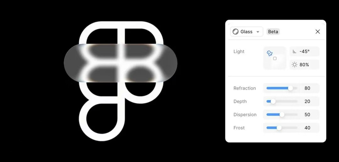 繼 Sketch 和 Motif 之后,Figma 原生也支持iOS 26 的液態玻璃(Liquid glass)效果。設計師可在 Figma 中直接應用該效果。用戶可以靈活在工具欄中調節材質和效果。