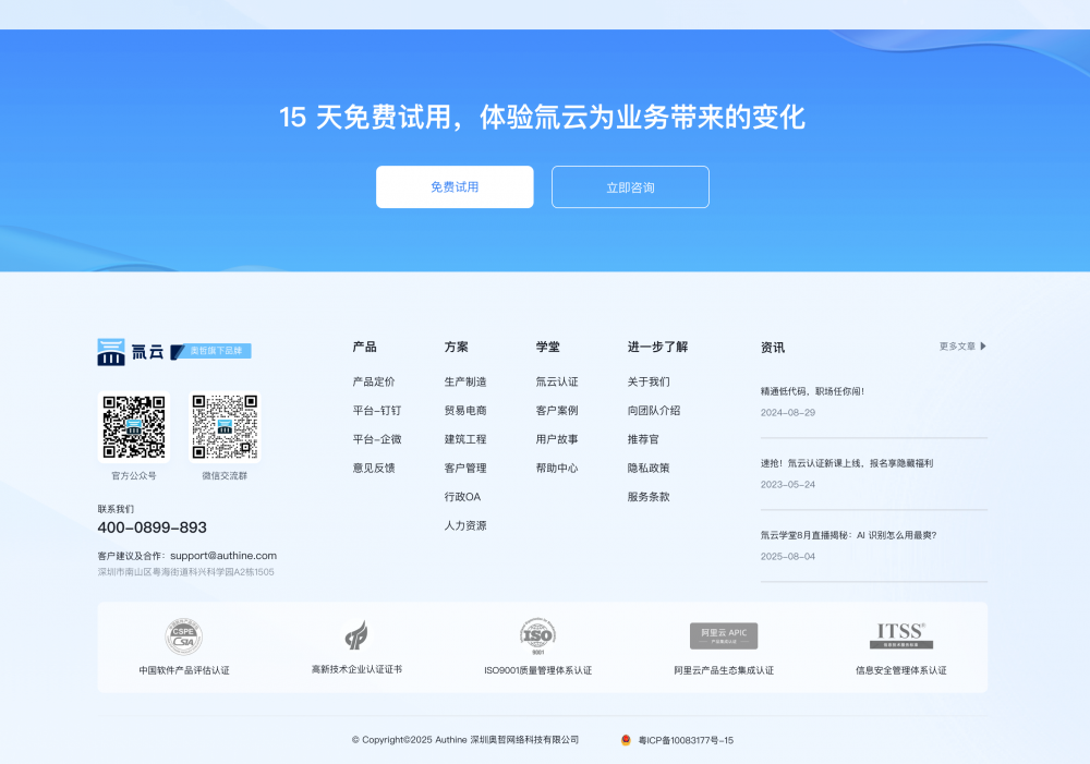 • 輔助信任元素:底部加入企業資質(ISO 認證、行業獎項)、聯系方式、版權信息,打消用戶的 “陌生感”。