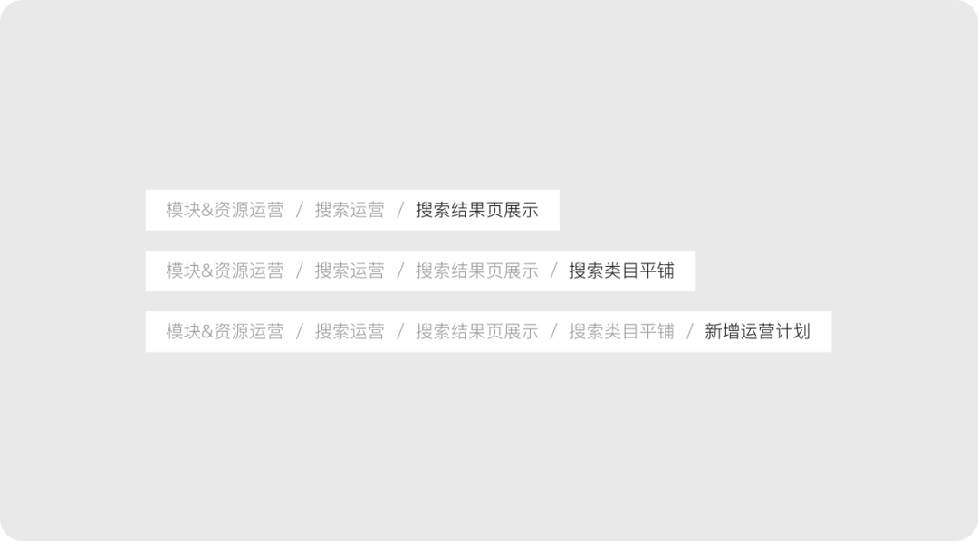 當(dāng)層級(jí)大于2個(gè)時(shí),可以利用面包屑導(dǎo)航,用戶可以根據(jù)面包屑導(dǎo)航看到當(dāng)前操作的位置和軌跡,并且方便返回到任意位置。