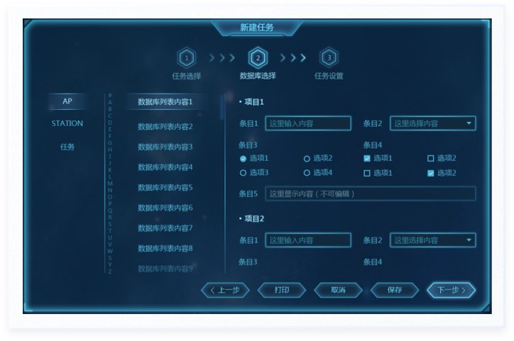 視覺方面使用大屏常用的深色背景,主色采用藍色配色,通過整體排版,元素的設計,來凸顯科技感。頁面布局方面,采用模塊化布局,便于區分信息類別;扁平化的視覺元素+框式設計,最大程度地減少頁面元素的干擾,提升頁面內容承載量。