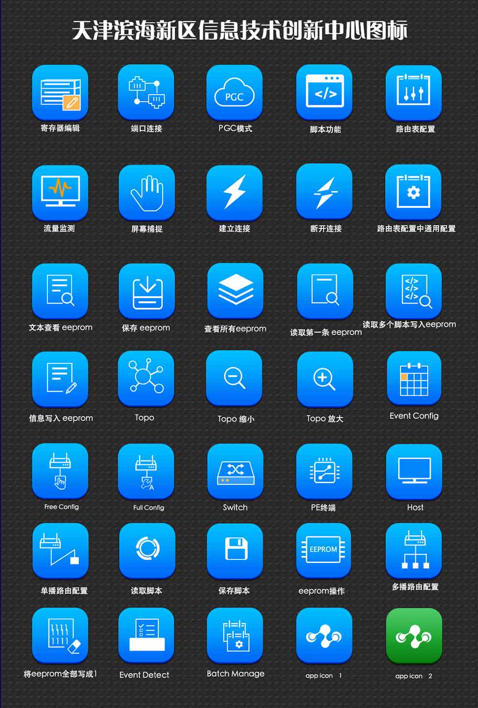 蘇野芯片高速串行rapidio芯片配置軟件是一款芯片功能監(jiān)測(cè),配置及調(diào)試的軟件,其復(fù)雜程度高,專業(yè)性極強(qiáng),需要反復(fù)與客戶溝通,理解背后含義才能設(shè)計(jì)出符合產(chǎn)品特征的圖標(biāo)。